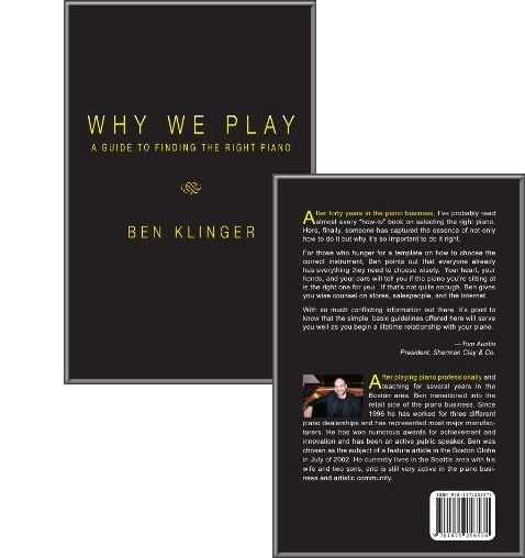 Author Ben Klinger states his purpose for writing the book as a way “to reconnect people to the buying process in meaningful ways … returning to a simpler and more rewarding shopping experience.” Mr. Klinger has worked for years in the retail piano world and is also a player. This book is a result of thousands of customers, and their feedback, both successful and disappointing.
